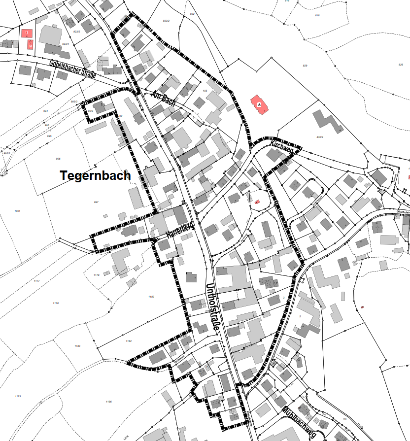 - im Westen von den Flur-Nrn. 995, 997/1, 999, 1179, 1180/2, 1182, 1183 sowie Teilflächen der Flur-Nrn. 87/2, 90, 997, 1000/1 Gemarkung Tegernbach,